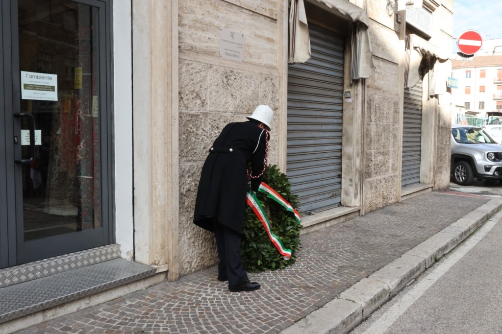 L’evento in piazza Corona. Il sindaco Latini: «Ricordare ci permette di riflettere sui terribili errori compiuti» – LE FOTO