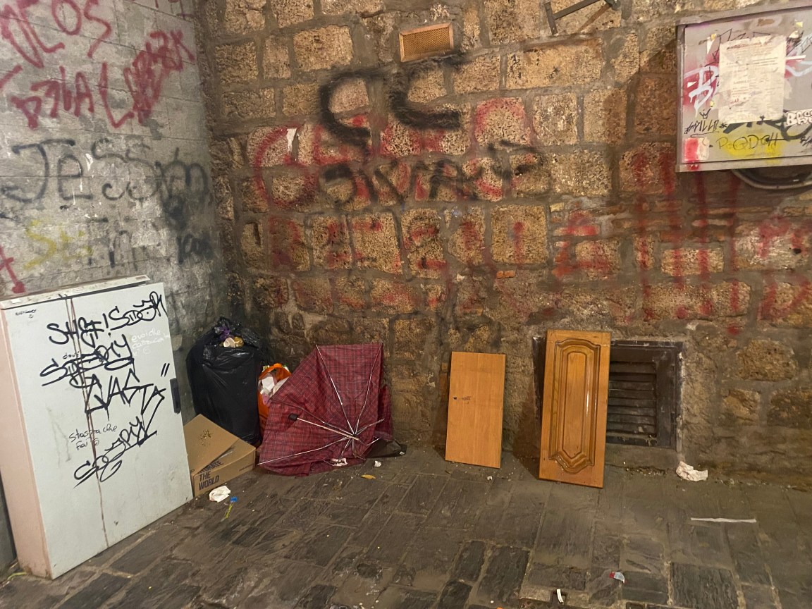 La cucina troneggia tra gli immancabili sacchetti di rifiuti domestici, da oltre due settimane. Ad essa si sono aggiunti stracci,  ombrelli spezzati, cartoni. La situazione, dunque, non è rimasta tale e quale. E’ peggiorata. E tra i commercianti e i residenti della centralissima zona che include via del Tribunale, via Silvestri e corso Vecchio, gira la battuta: «La cucina componibile in legno massello tinto noce, è in salto».