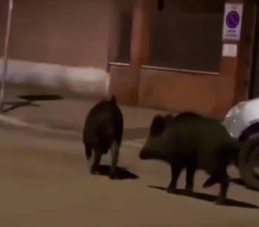 TERNI – Una coppia di cinghiali a passeggio in centro. A fare scorta di cibo: di rifiuti, che proliferano e sono preda facile per l’animale selvatico che sembra essere ormai di casa anche nella città di San Valentino. Pochi mesi fa una intera famiglia avvistata in via Bramante. La coppia a spasso per via Oberdan e piazza Dalmazia, dal centro della strada si spostava sul marciapiede ogni volta che passava un’auto.