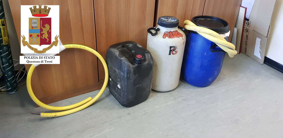 Uno dei due uomini è sceso dall’auto con due grosse taniche di plastica, ha scavalcato la recinzione e dopo 10 minuti circa, l’auto ripartiva alla volta di Terni per fermarsi in un locale nei pressi dello Stadio. È stato lì, che i poliziotti hanno controllato i due e il contenuto della vettura: a bordo sono state trovate 4 grosse taniche piene di gasolio ed un tubo di gomma giallo, verosimilmente per aspirare i liquidi; i due sono stati portati in Questura e messi a disposizione dell’Autorità Giudiziaria. Dagli ulteriori accertamenti è emerso che l’uomo alla guida dell’auto, di 56 anni, residente a Terni ed originario della Puglia, era anch’egli pregiudicato. Sono stati entrambi denunciati e il 45enne è stato anche segnalato per l’aggravamento della misura dell’obbligo di dimora, in quanto avrebbe dovuto essere in casa dalle 20.00 alle 07.00 e non avrebbe dovuto lasciare il Comune di Terni.