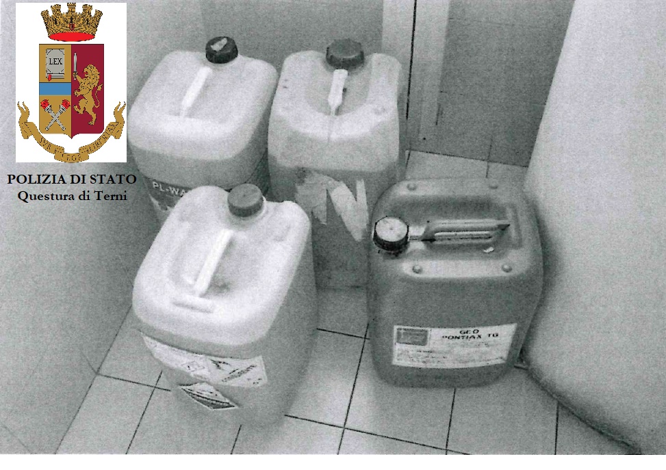 La mattina successiva, il 31 gennaio, gli investigatori della Mobile ternana hanno effettuato un altro sopralluogo nel parcheggio dei veicoli industriali ed hanno rinvenuto altre 3 grosse taniche di plastica ed un tubo giallo di gomma ancora infilato nel serbatoio di un veicolo.