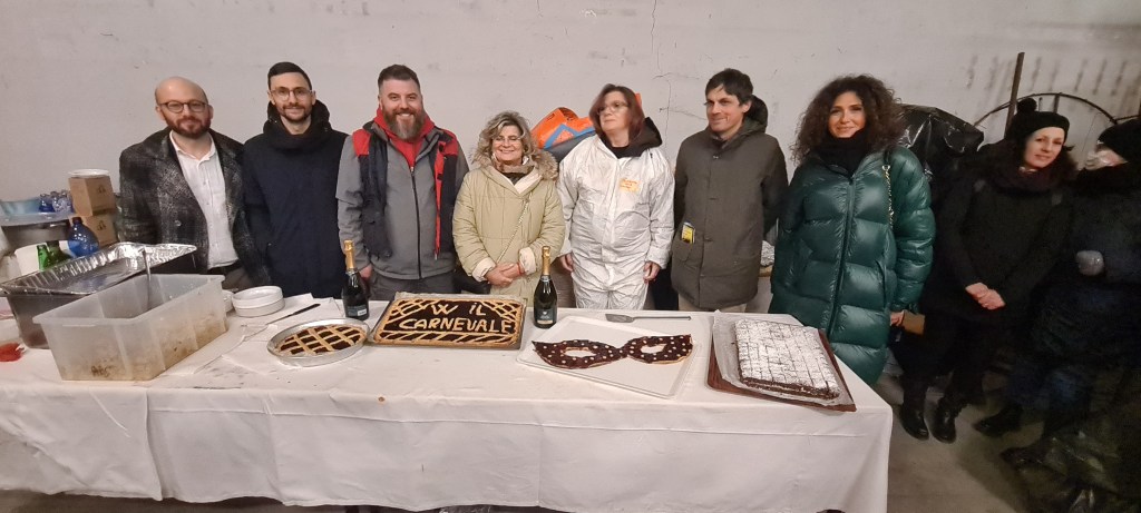 Tutto pronto quindi per la 42esima edizione che vedrà i carri sfilare lungo le vie del quartiere, per poi finire il giro in piazza Martinelli. L’organizzazione del Carnevale è dell’associazione I Rioni di San Sisto che ha unito tanti giovani nella tradizione di costruire i carri. In questi giorni a far visita al cantiere sono stati il sindaco Andrea Romizi e altri rappresentanti della istituzioni. Non tutti sanno che dietro i tre giorni di sfilata ci sono tante ore di lavoro. Dal 14 novembre è cominciata l’opera di smantellamento del vecchio carro, con il recupero del materiale che si può riutilizzare e l’inizio del nuovo carro. A lavorare ogni sera ne capannone ruotano circa 20 persone negli ultimi giorno i volontari si moltiplicano. Fabrizio Bovi segretario dell’associazione I Rioni spiega: «Per la costruzione dei quattro carri sono stati impiegati 100 chili di colla, 100 di carta, 1000 di ferro. All’inizio l’idea del carro e la costruzione della sagoma è realizzata dai carristi ovvero le persone con più esperienza, poi nella fase successive vengono coinvolti i volontari, famiglie del quartiere, ragazzi e associati, che dipingono e aiutano a ricoprire il carro con la carta pesta. Gli ultimi giorni sono quelli più belli, quelli in cui si resta in piedi la notte per finire il carro, spesso ci siamo trovati a dormire al freddo per un’ora per poi ricominciare a lavorare. Quello che ci ripaga dell’impegno? Il sorriso dei bambini e vedere il nostro quartiere pieno di colori, musica e allegria».