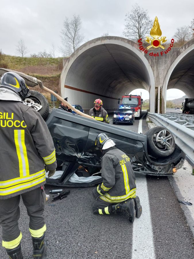 VALFABBRICA (Perugia) – Incidente stradale sulla superstrada ss318 al km 38 all’uscita della galleria, zona Valfabbrica, dove un’autovettura si è ribaltata finendo addosso al guardrail nella mattina di lunedì 27 marzo.