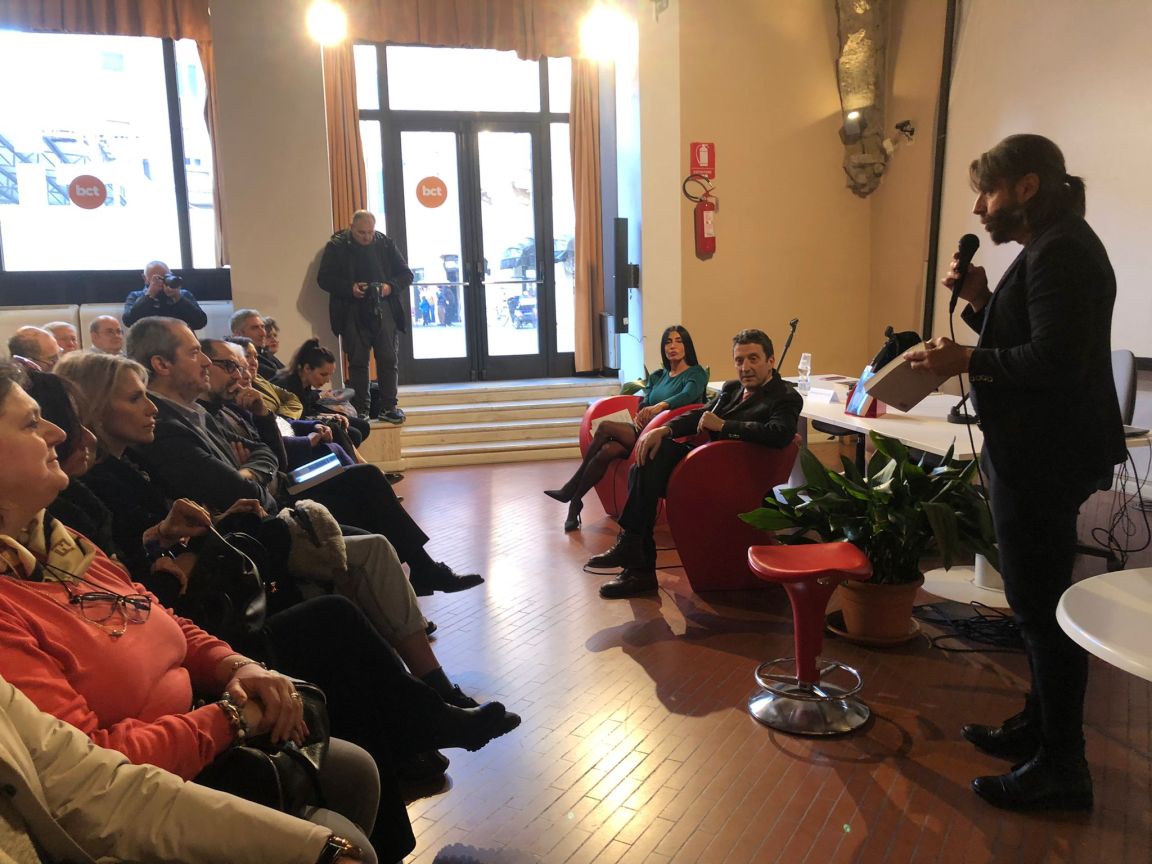 TERNI – Quasi si sentiva il profumo dei gelsomini in Bct ascoltando le parole di Pietrangelo Buttafuoco. Giornalista e scrittore siciliano, Buttafuoco ha presentato in una sala gremita, il suo ultimo libro ‘Sono cose che passano, l’innesto nell’eterno’, romanzo seducente e infuocato proprio come la Sicilia. E la terra della Trinacria è stata il filo conduttore dell’evento, tra storia, vicende, tradizioni, arte, e popoli, i tanti popoli che da secoli hanno solcato la terra di Sciascia e Pirandello, di Battiato e Falcone. In sala anche il sindaco Latini, gli assessori Cecconelli e Proietti. L’incontro, inserito nel programma di UmbriaLibri365, è stato introdotto da Roberta Montagna e accompagnato dalle domande di Chiara Cavalieri e dalle sottolineature di Stefano D Majo.