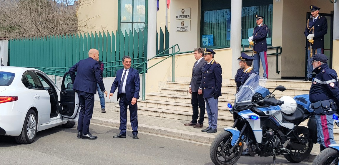 TERNI – E’ arrivato nel primo pomeriggio in via Antiochia, ricevuto dal questore di Terni, Bruno Failla, Emanuele Prisco, sottosegretario di Stato al ministero dell’Interno, per fare visita alla sede della polizia di Stato di Terni.