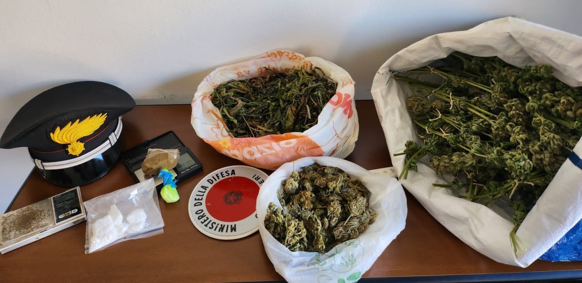 Il servizio predisposto sin dalla prima mattina risultava proficuo in quanto verso le 9 i militari decidevano di entrare in azione effettuando delle perquisizioni tutte a carico del soggetto, in particolare quella presso la sua abitazione che permetteva di rinvenire svariate quantità di stupefacenti, di diverse tipologie (circa 50 grammi di cocaina, 45 grammi di marjuana, circa 50 grammi di hashish oltre a vari rami di diversa misura con inflorescenze di marijuana essiccati aventi un peso lordo superiore agli 800 grammi). La sostanza in questione veniva prodotta direttamente in una serra artigianale installata dal soggetto in un magazzino situato nelle pertinenze dell’abitazione.