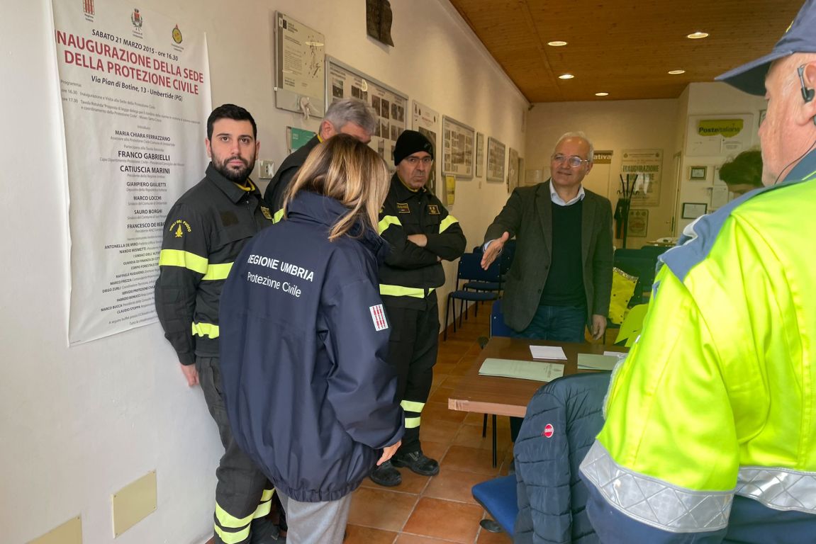 La sede della Protezione civile di Foligno è diventata il centro operativo per coordinare le operazioni di emergenza. I sopralluoghi. Le FOTO