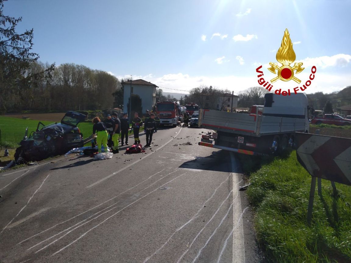 CITTÀ DI CASTELLO (Perugia) – Drammatico incidente verso le 10 di lunedì 27 marzo a Città di Castello. Il sinistro è avvenuto nei pressi della frazione tifernate di Lerchi, lungo la strada provinciale 221 che collega Città di Castello con Arezzo.