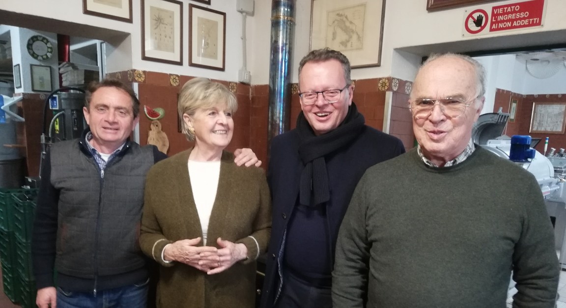 L’assessore ha visitato il frantoio insieme al suo staff intrattenendosi con Giovanni Batta, con la signora Giuliana e con Giovanni Breccolenti, agronomo di fiducia.