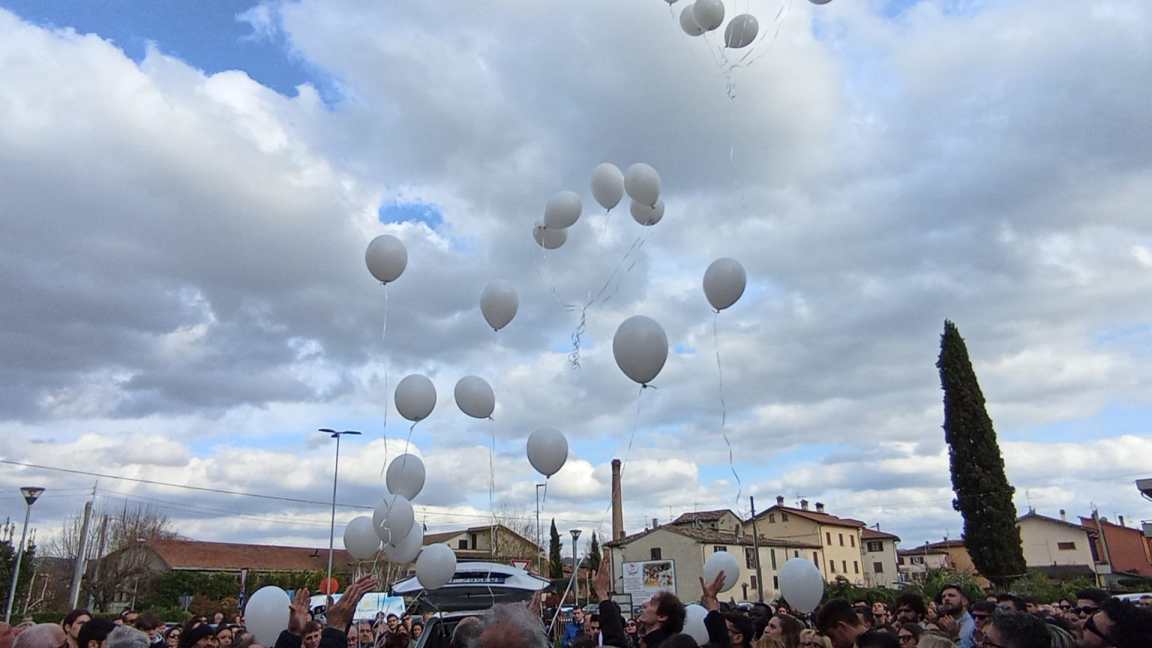 I palloncini volano in cielo. La musica rompe un silenzio che faceva rumore. Le lacrime e il battito delle mani. Una comunità unita piange il suo giovane amico. Buon vento, Tommaso.