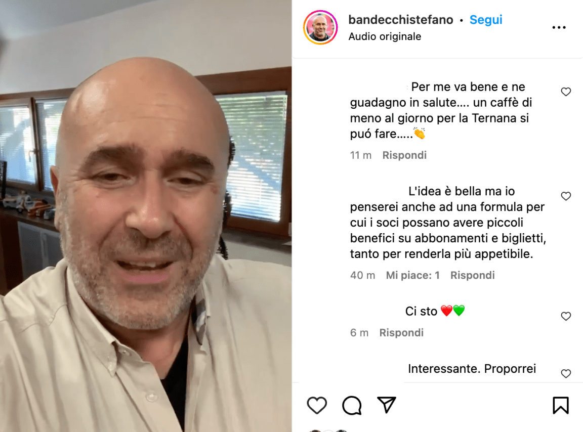 TERNI – Niente politica, siamo tifosi. Stefano Bandecchi ricorda di essere sempre il presidente della Ternana calcio e lancia su Instagram la sua ultima idea: dare il 20 per cento della squadra rossoverde a un’associazione di tifosi.