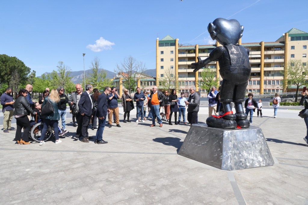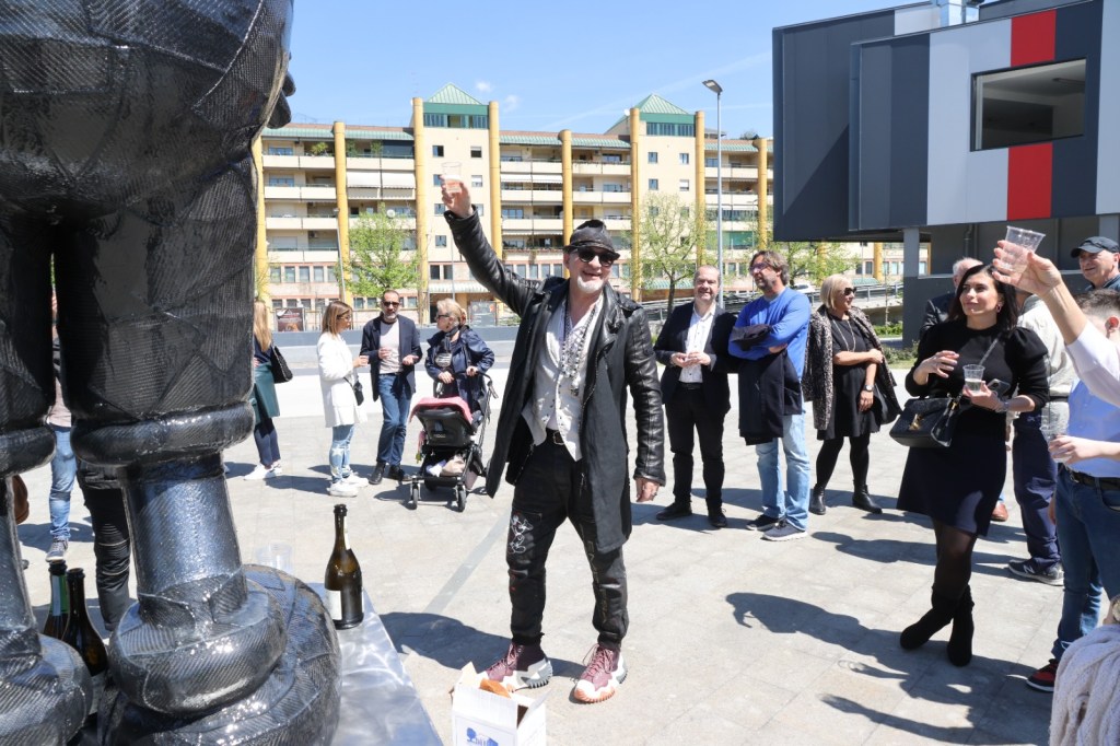 Nella nuova piazza è stata installata la scultura di Giampiero Malgioglio. LA FOTOGALLERY