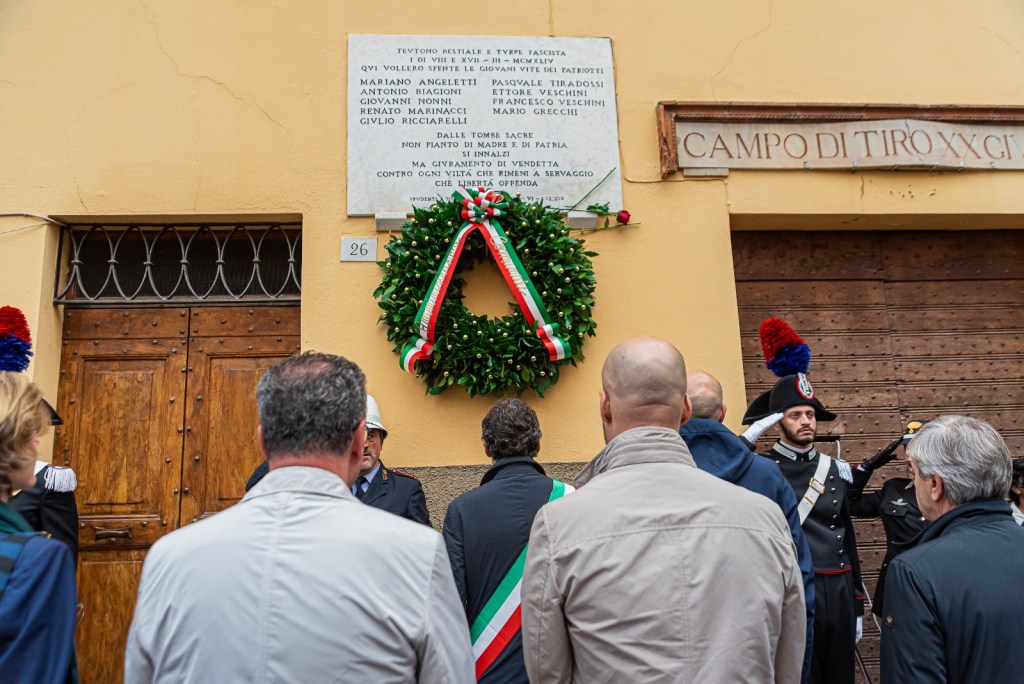 Le celebrazioni sono poi proseguite in Borgo XX Giugno, davanti al poligono di tiro, dove è avvenuta la deposizione di corone di alloro sulla lapide in ricordo dei nove patrioti fucilati dai nazi-fascisti nel 1944.