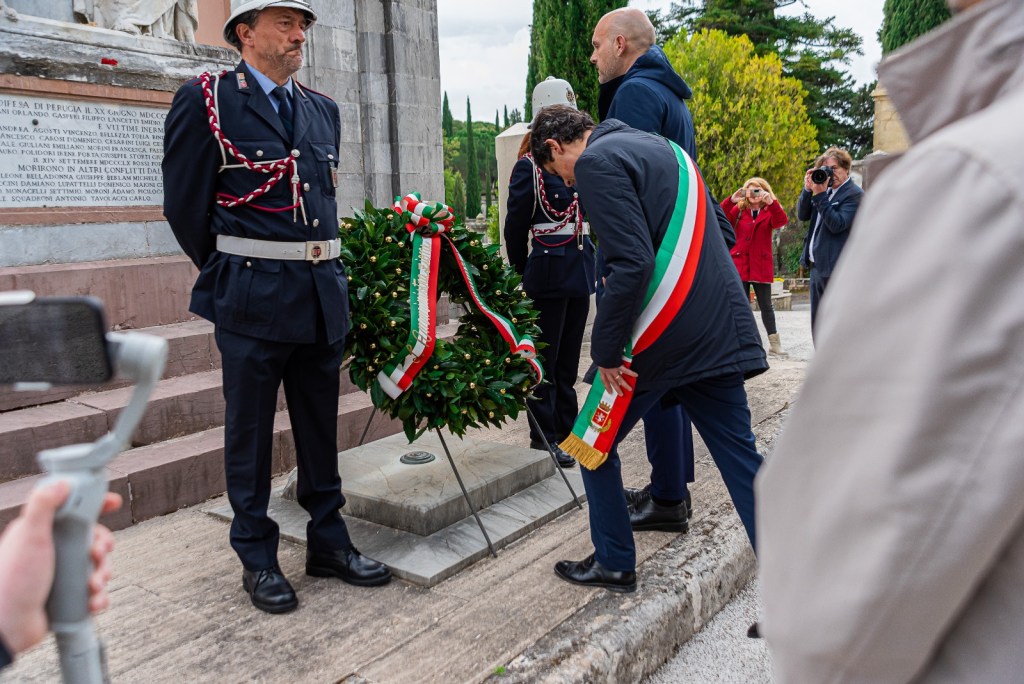 PERUGIA – Celebrazioni a Perugia per la Festa della Liberazione martedì 25 aprile, con un programma che, come di consueto, è partito dal Civico Cimitero dove le autorità civili e militari presenti hanno deposto le corone di alloro al sacello dei caduti e sulle tombe delle medaglie d’oro della Resistenza.