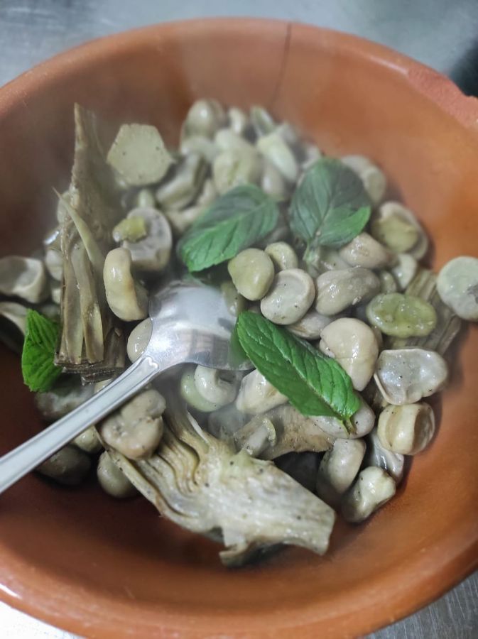 TERNI – «La mattina presto nonna N’Gilina si infilava quello strano grembiule a righe fatto con la fodera dei materassi e andava a raccogliere le fave giù l’orto. Poi le puliva e le cucinava in varie maniere. Con i carciofi erano buonissime. Ma anche cotte a minestra e servite con un uovo di pasta ertano squisite». Eleonora Venanzoni svela i segreti delle ricette di maggio. «Con 2 carciofi e mezzo chilo di fave fresche si prepara un contorno per quattro persone. Si mette in una casseruola un mazzetto di mentuccia, un aglio, una cipolla bianca tagliata a fettine sottili, un pizzico di sale, un filo d’olio. Si lascia appassire per un minuto e mezzo a fuoco basso. Si aggiungono le fave fresche (dopo averle sbucciate). Il tempo di pulire i carciofi e metterli a bagno con acqua e limone, che è già ora di tuffarli nella padella insieme alle fave. Arrivati a cottura si servono con una foglia di menta romana».