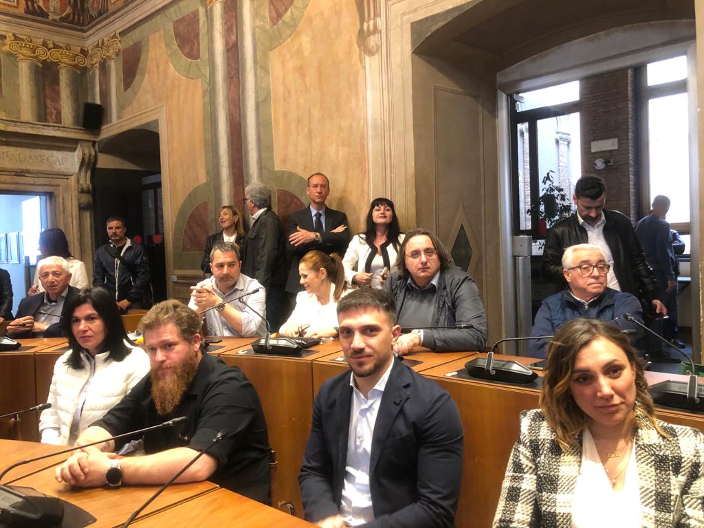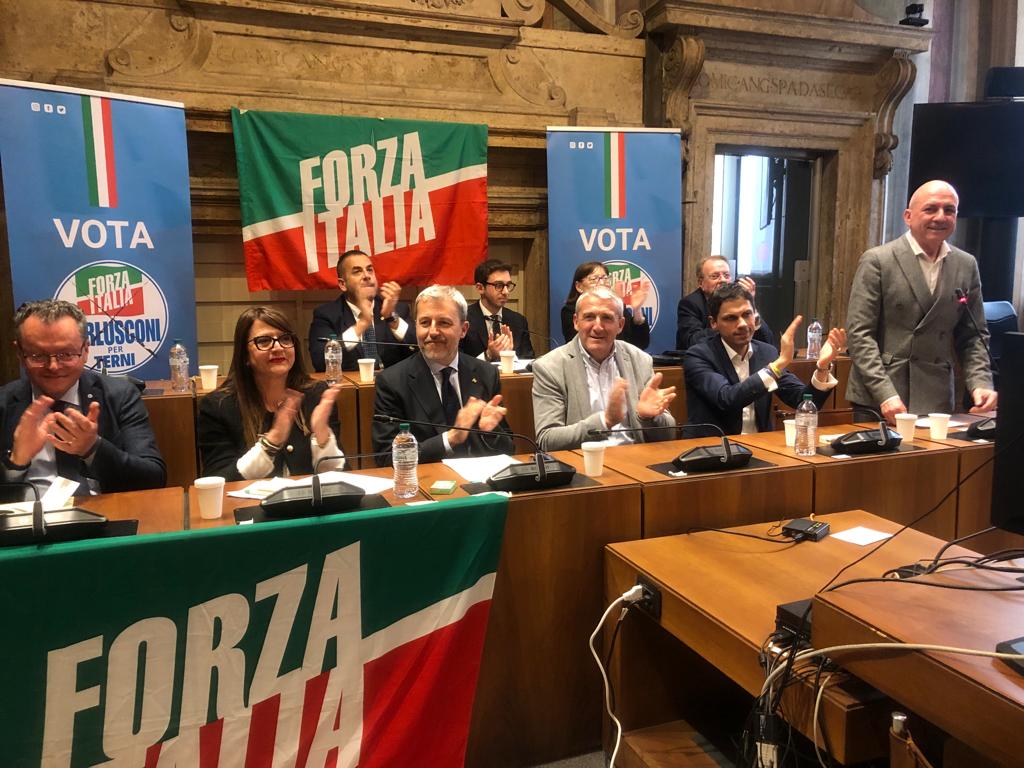 TERNI –  Giorni elettorali e ora tocca a Forza Italia la presentazione della lista dei candidati alle amministrative di maggio. In sala consiliare da Perugia l’assessore regionale all’Ambiente Roberto Morroni, il sindaco perugino e coordinatore regionale azzurro Andrea Romizi, il sindaco di Todi Antonino Ruggiano e la senatrice Fiammetta Modena che scatta foto al soffitto affrescato del palazzo. Presenti l’onorevole forzista Raffaele Nevi, l’europarlamentare Francesca Peppucci, la presidente della Provincia Laura Pernazza, i coordinatori provinciale e comunale, Bruschini e Albert.