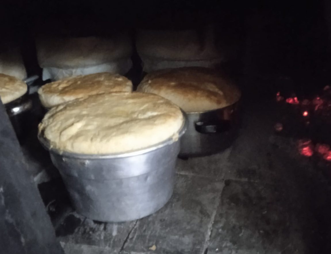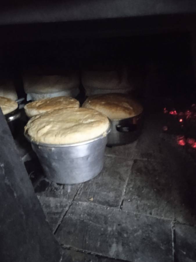 Ecco allora che Eleonora, classe 1954, una vita passata tra i fornelli, tira fuori il “Libro dei sogni” e apre le danze. Di giovedì, come tradizione vuole.  Vediamo la ricetta della pizza di formaggio. Partiamo con 50 uova: «Si aprono una ad una, si prepara un pizzico di sale per ciascuna e si frullano. Si prende un chilo di lardo macinato e un chilo di strutto. La sera prima si mette in una ciotola 300 grammi di lievito di birra in tre litri d’acqua tiepida. Si tira fuori la farina (5 chili) e si dispone a fontana. Poi si sbatte forte l’impasto. Ma talmente forte che la pizza di formaggio è anche detta pizza sbattuta. Prima di infornare si mette un rametto di euforbia davanti al forno. Se l’euforbia prende fuoco significa che la “vampa” è ancora alta e bisogna attendere. Se  invece il fiore si attorciglia senza bruciare, allora si possono infornare le pizze, che a seconda della grandezza delle teglie potranno essere quattro o cinque, con 50 uova di impasto».