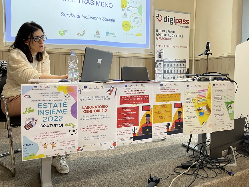 MAGIONE (Perugia) – È stata la commovente testimonianza di Inna Luzhkova, fuggita con la famiglia dall’Ucraina a causa della guerra e oggi residente a Magione, ad aprire martedì 11 aprile la presentazione delle attività che nel corso dell’anno sono state promosse dal Centro di mediazione per comunità immigrate di Magione nell’ambito del progetto Iti Trasimeno sociale – Investimento territoriale integrato, gestite dalla cooperativa Frontiera Lavoro.