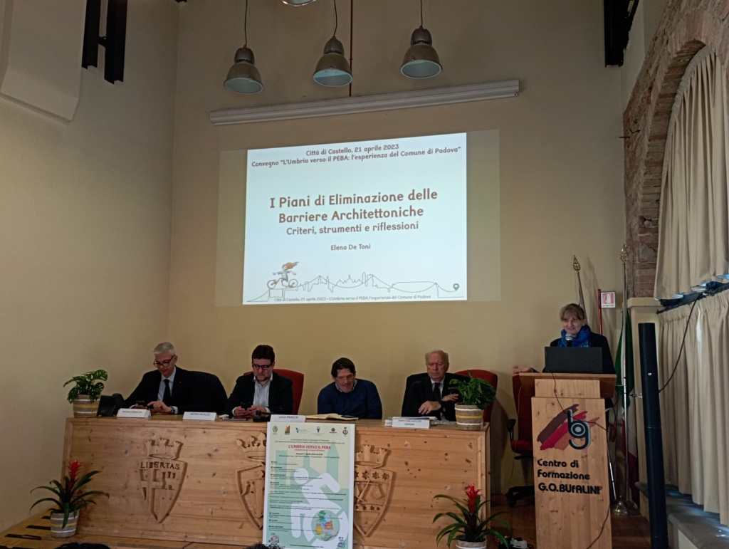 Per il sindaco di Città di Castello, Luca Secondi, il Peba «è un elemento importante. La proposta che faccio è quella che nella definizione degli oneri di urbanizzazione sul consumo di suolo, venga introdotto un indice dedicato all’abbattimento delle barriere architettoniche. E’ una integrazione utile per reperire delle risorse e per dare delle risposte concrete. Dobbiamo far crescere le nostre comunità sotto tutti i punti di vista ed è dal punto di vista culturale che viene la gratificazione più grande. Da quando ci siamo insediati la soddisfazione più grande è arrivata attraverso un premio consegnato da Anci al Comune di Città di Castello come migliore pratica sulla comunicazione aumentativa alternativa, realizzato da alcuni ragazzi disabili che saranno accolti dal presidente Mattarella. Il nostro augurio è che si allarghi esperienza per la realizzazione del Peba con Padova e a tutti le associazioni del territorio».