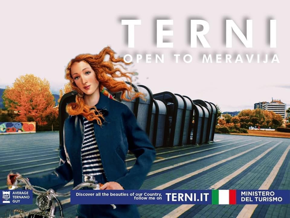 I due creatori Riccardo Mariani e Federico Petroni, uniti dalla passione per i meme, hanno ripreso la nuova campagna internazionale di promozione turistica del ministero del Turismo ed Enit che vede la Venere di Botticelli spostarsi in varie località turistiche italiane, trasportandola nella ‘ternitudine’. “Open to meraviglia” è il claim pensato per questa campagna multisoggetto – nata da un’idea del gruppo Armando Testa – che si compone di un video promozionale, di una campagna affissione e di una virtual influencer. Naturalmente il claim è diventato ternano “Open to meravija”. Il totale dell’investimento previsto da Enit è di nove milioni di euro, «Ma noi ci saremmo accontentati anche della metà!» esclamano i due creativi ternani.