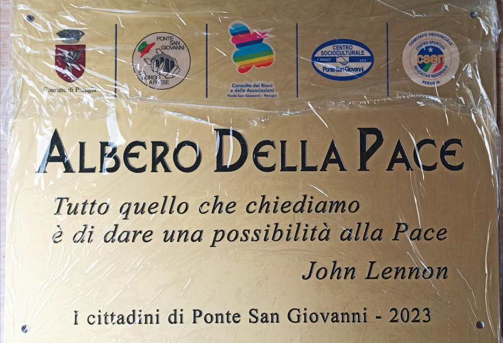 I primi di giugno ci sarà l’inaugurazione con tutta la comunità della prima periferia di Perugia, dove per l’occasione verrà affissa una targa accanto all’albero con una frase dell’artista britannico John Lennon: «Tutto quello che chiediamo è di dare una possibilità alla Pace».