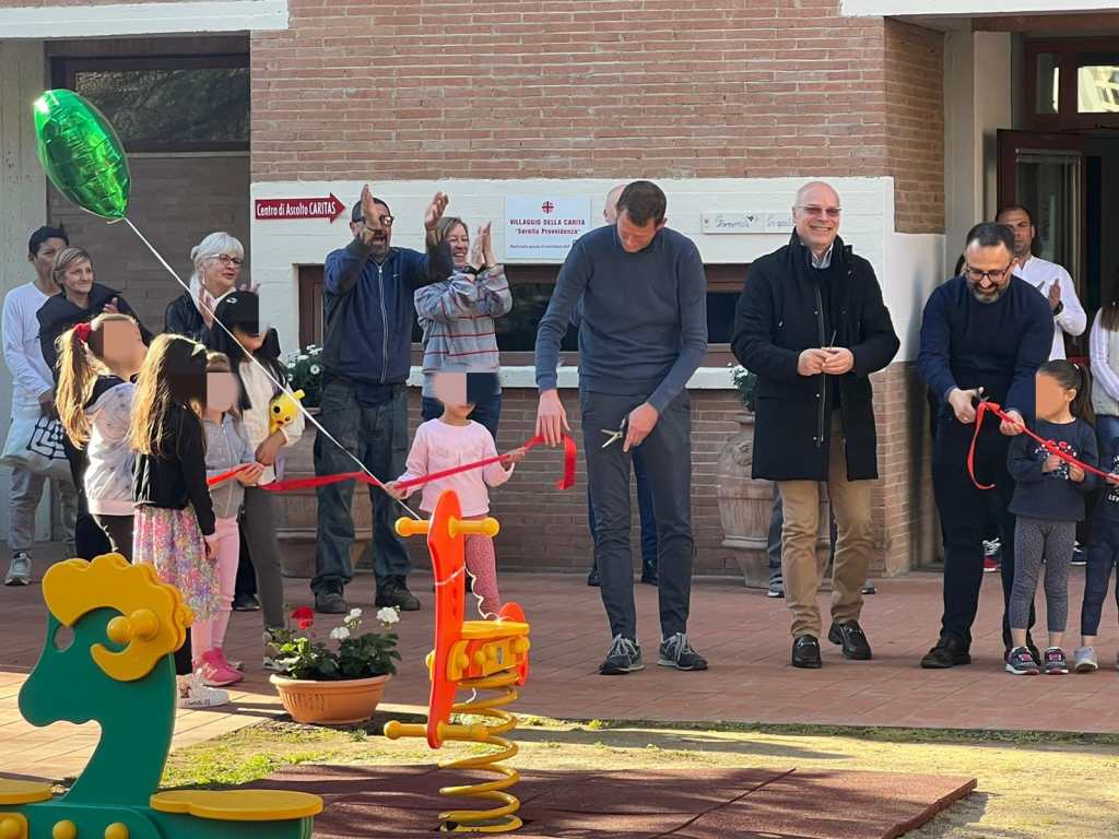 PERUGIA – Donare sorrisi e ricevere il dono più bello: la serenità dei bambini. Questo il senso profondo dell’inaugurazione di un bellissimo parco giochi per i piccoli che vivono quotidianamente il Villaggio della carità – Sorella Provvidenza nella sede della Caritas diocesana di Perugia – Città della Pieve.