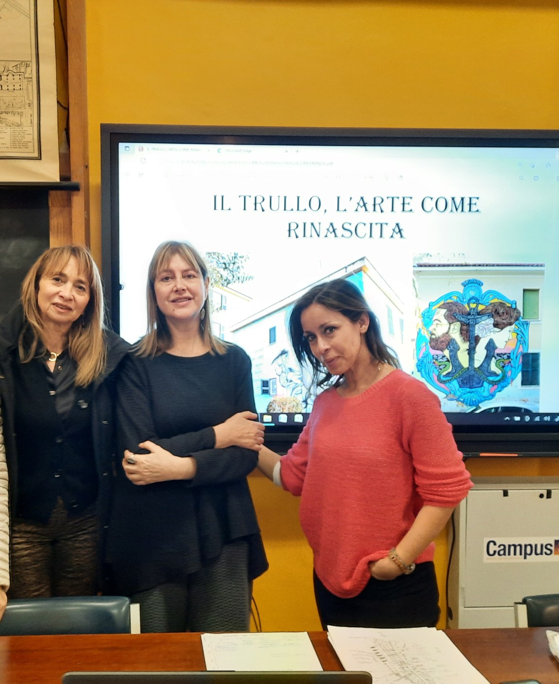 1)Conferenza sul Trullo Il 27 marzo la dottoressa Francesca Calvani, storica e critica d’arte è venuta a Terni ed ha ripercorso insieme agli studenti le tappe della storia del Trullo partendo dai primi insediamenti della zona in epoca romana, passando per la costituzione della borgata ad opera di Costanzo Ciano, fino alla sua traformazione negli anni ’60, quando il Trullo si trasformò in un luogo dalla cattiva fama a causa dello spaccio di droga e criminalità.