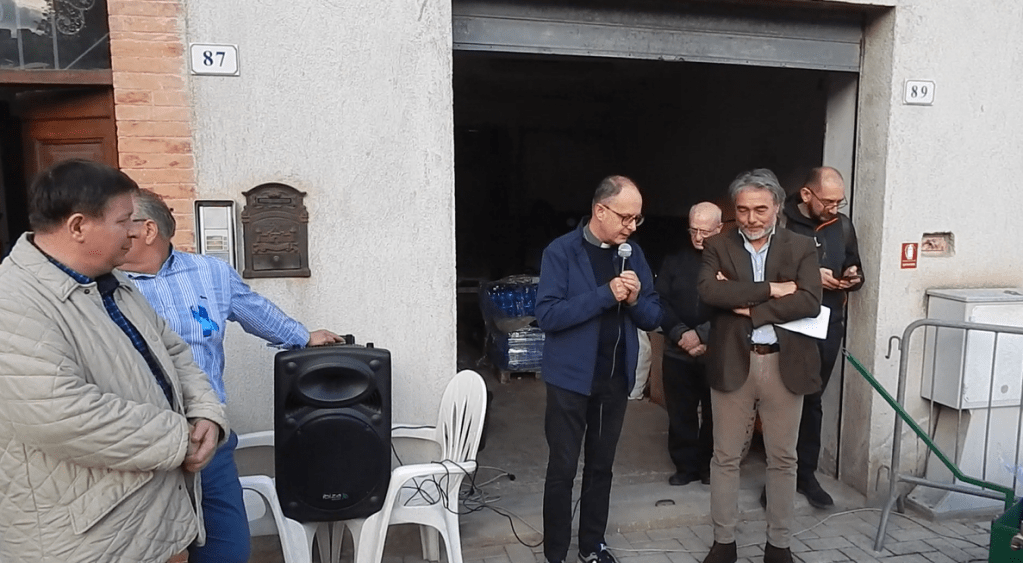 «Il terremoto ha tolto la voce non solo alle campane ma a una intera comunità – ha detto monsignor Maffeis, che ha mostrato ancora una volta la forte vicinanza della Chiesa perugina ai luoghi del cratere – E’ un gesto simbolico questa benedizione, è un augurio e una preghiera affinché la comunità di Pierantonio possa ritrovare una voce . E’ un augurio e un impegno perché questa comunità torni a incontrarsi e a parlarsi. Le istituzioni stanno facendo la loro parte ed è importante che nessuno si senta abbandonato. C’è un desiderio profondo di riscatto e di ricostruzione. Chi ha organizzato questa serata ci ha dato la possibilità di stare insieme di condividere oltre al cibo quanto abbiamo dentro, ovvero un sentimento di amicizia e di tornare a essere comunità».