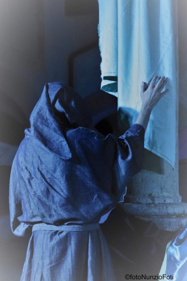 «Lo spettacolo – spiega ancora Corrado – ha come narrazione la vita ed alcuni momenti dei primi venti anni della vita di Francesco d’Assisi. L’opera ruota attorno alle stoffe, ai colori ed all’attività della bottega del padre Pietro da Bernardone, una scelta questa perché il Santo di Assisi era partito proprio da quella bottega. Nello spettacolo c’è il ritorno di Francesco, ormai predicatore, ai ricordi del passato proprio mentre viveva e lavorava nella bottega in Assisi. I ricordi si alternano con varie scene che sono vicine al presente. Ad ogni colore viene abbinato un racconto della semplicità e della vita di tutti i giorni. Al termine del racconto Francesco indossa nuovamente il saio e torna in viaggio per aiutare le anime ricordando i colori delle stoffe».