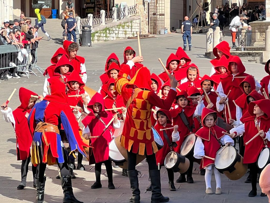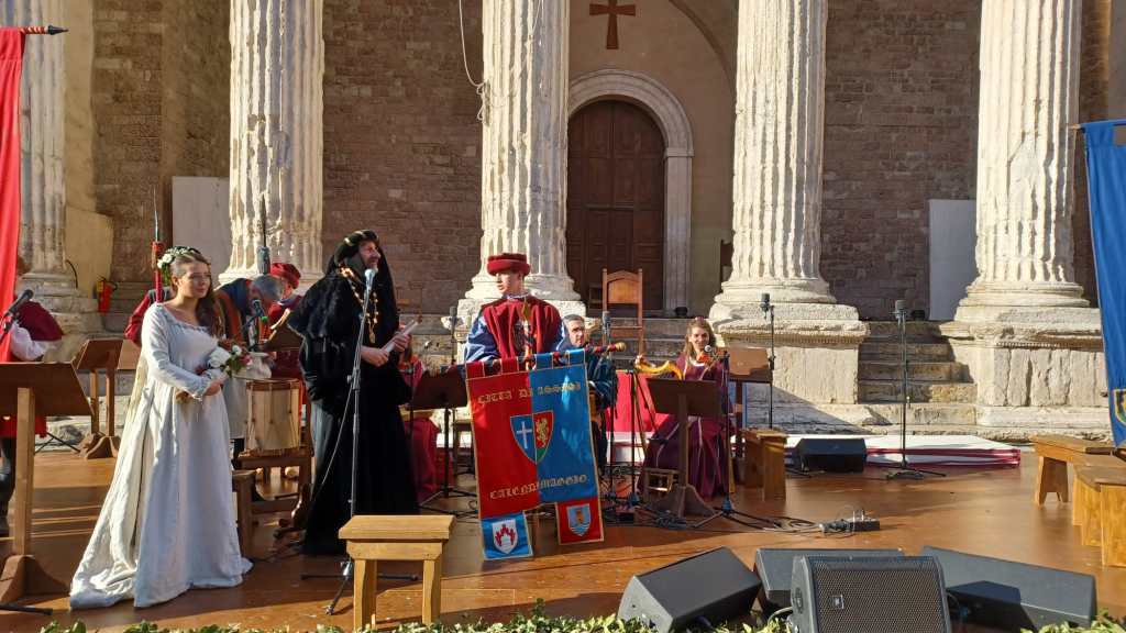 La giornata di sabato 6 maggio partirà intorno alle 3 di pomeriggio con i cortei storici, la lettura dei bandi di sfida e l’uscita dei cortei per Corso Mazzini e Piazza Santa Chiara. Seguirà “Il Canto”, con la sfida canora tra i cori di partaioli blu e rossi dopo la quale i giurati – Chiara Bertoglio, musicologa e musicista, Ciro D’Emilio, regista e sceneggiatore, Antonio Musarra, storico medievista – si ritireranno per decidere l’assegnazione del Palio per il Calendimaggio di Assisi 2023.