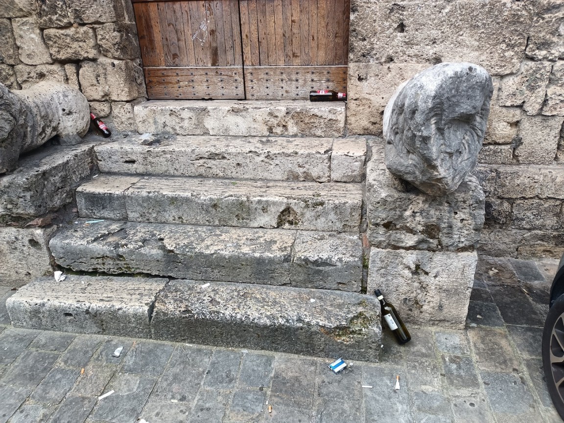 TERNI – Sulla scalinata della chiesa di Sant’Alò è ormai di uso a bivacco e ciò e dimostrato dalla presenza di mozziconi di sigarette, bottiglie di birre e tanto altro. Il portone di accesso ormai è pieno di scritte con parole poco edificanti, addirittura una gomma da masticare e’ stata conficcata nella serratura. È vergognoso tenere così un edificio di grande valore non solo spirituale e religioso, ma soprattutto storico artistico.