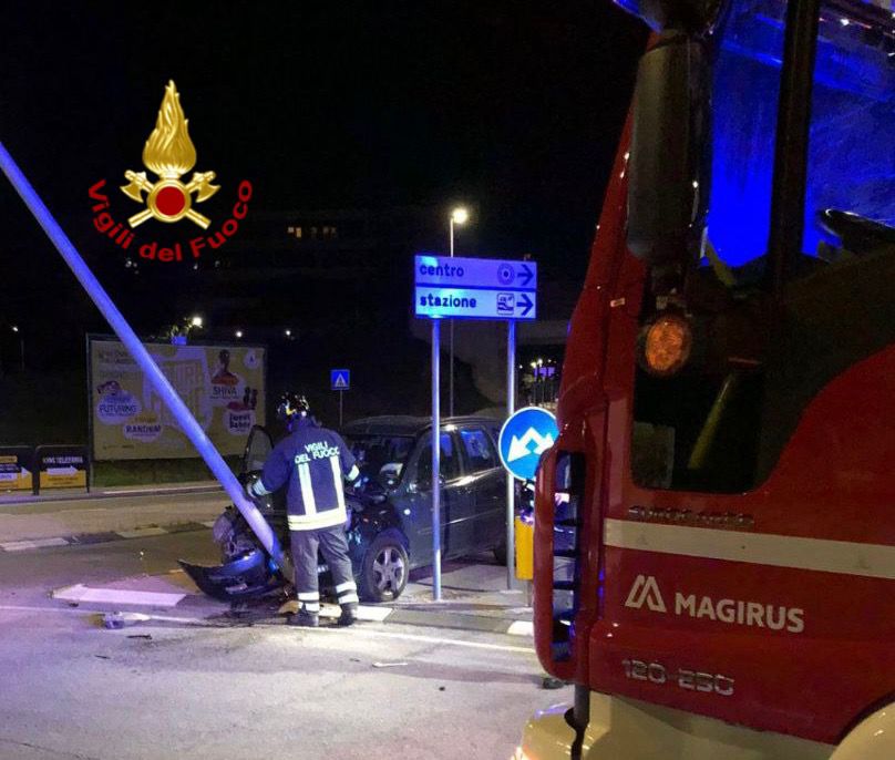 Illesa la conducente dell’autovettura. Sul posto i vigili del fuoco del comando locale, il personale sanitario del 118 e la municipale.