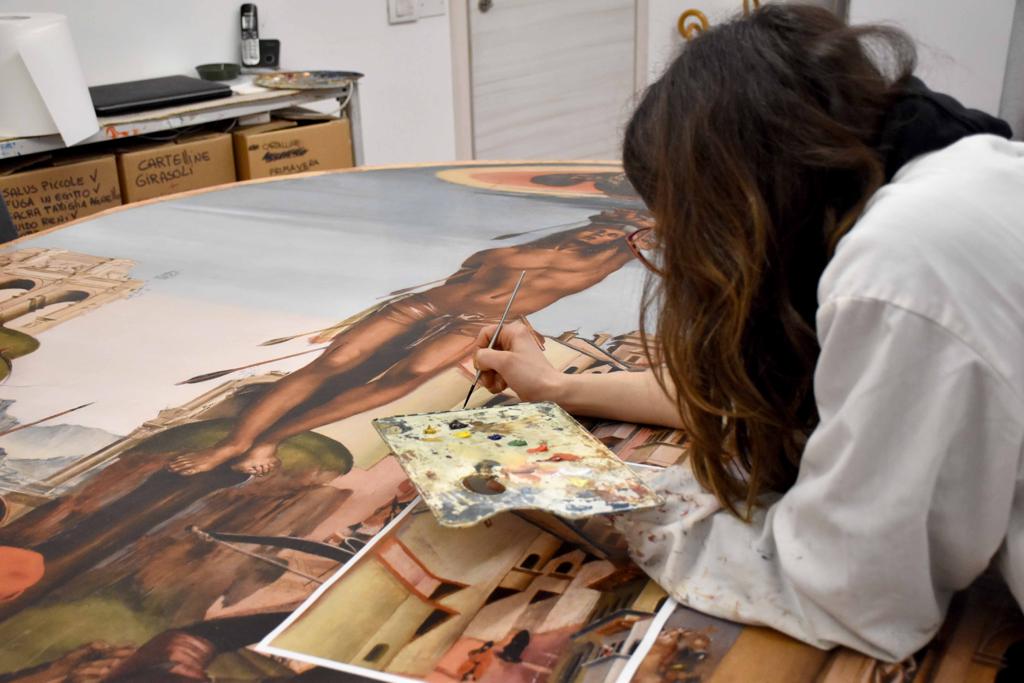 Di seguito lo staff della Bottega Tifernate che ha contribuito alla realizzazione dell’opera. Il team è composto dalle pittrici Sonia Donati, Loredana Gnoni, Sara Marsili, Erica Pitocchi, Nadia Tacchini. La preparazione e il supporto sono stati curati da Marcello Giombetti e Jeremy Maillet, mentre la grafica da Sara Falleri e Lorenzo Rometti.