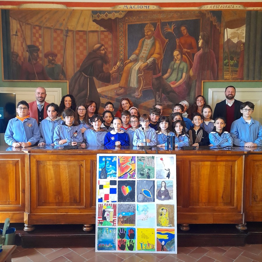MAGIONE (Perugia) – Un riconoscimento agli alunni e alunne della classe quarta B della scuola primaria Lombardo Radice è stato consegnato dall’amministrazione comunale di Magione per aver vinto il concorso Young European Heritage Makers Competition 2022 con il progetto “La Giocanda” diventando così i più giovani ambasciatori della cultura italiana in Europa, artefici di uno straordinario percorso di esplorazione e conoscenza che li ha portati dalla sala del Consiglio comunale di Magione fino alla sede del Consiglio d’Europa a Strasburgo.