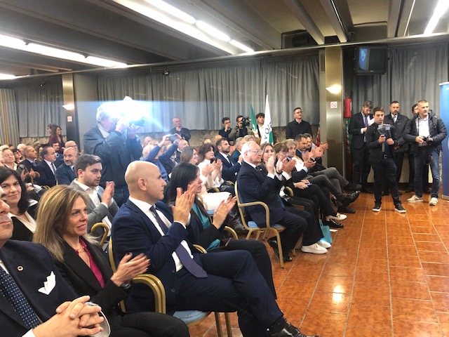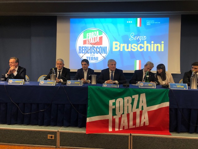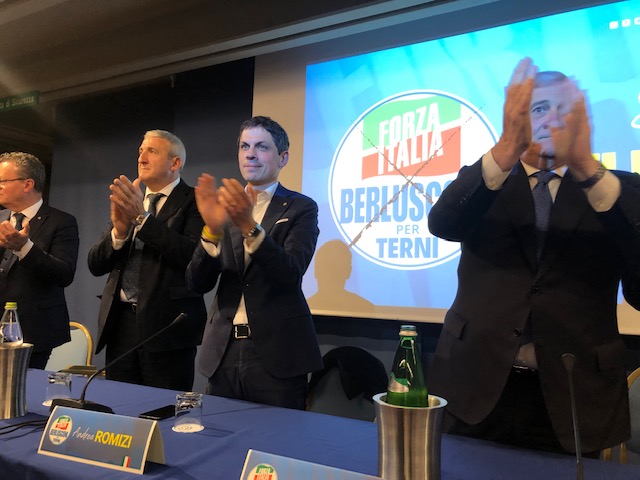 Sala addobbata da vera convention, come nello stile dei forzisti da sempre, bandiere al vento e inno del partito. «Sono vento a sostenere Masselli – ha detto Tajani – questa città merita di essere seguita da tanti amici. Ho ricevuto una telefonata del nostro leader Silvio Berlusconi al quale ho raccontato dove stavo e lui, ancora ricoverato, ha detto che era rammaricato di non essere a Terni ma che abbraccia tutti con entusiasmo. Dobbiamo aiutare le acciaierie, lo abbiamo fatto da sempre e continueremo a farlo, difendendo la produzione dell’acciaio di qualità di Terni, vi garantisco – ha rimarcato Tajani – il mio impegno perché questo comparto industriale possa continuare a produrre in città uno dei migliori acciai in Europa. Terni è uno dei perni fondamentali del sistema Italia anche nel settore agroalimentare che difenderemo a spada tratta».