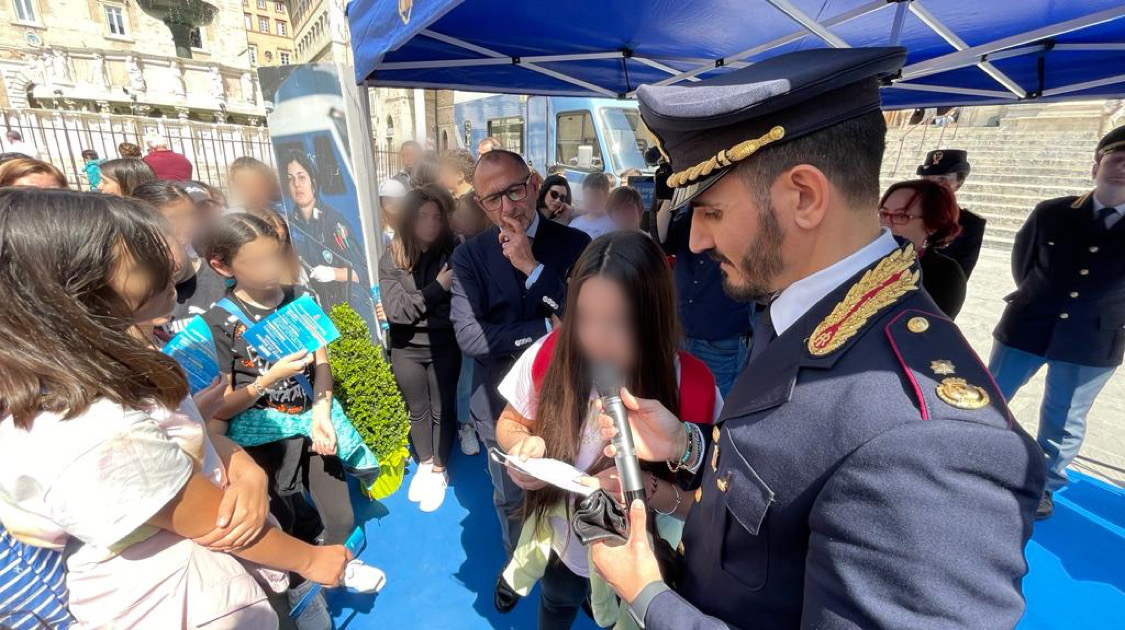 PERUGIA – In occasione della Giornata internazionale dei minori scomparsi, nella mattina di giovedì 24 maggio, il camper della polizia di Stato di Perugia ha fatto tappa in piazza IV novembre, nel centro storico del capoluogo umbro.