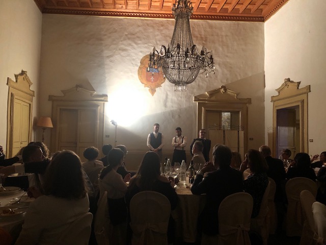 Venerdì 26 maggio nella splendida location di palazzo Bianchini Riccardi, in pieno centro storico, il circolo ternano presieduto da Enrico Franconi ha organizzato una coinvolgente e suggestiva conviviale ‘con delitto’. Si è trattato di un vero e proprio spettacolo durante la cena con un ottimo cast di attori capitanati da Sergio Laliscia, autore delle trame e organizzatore degli eventi.