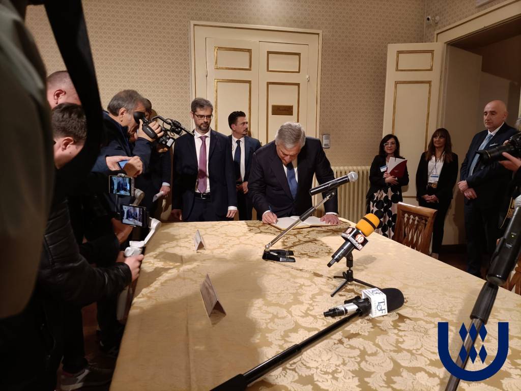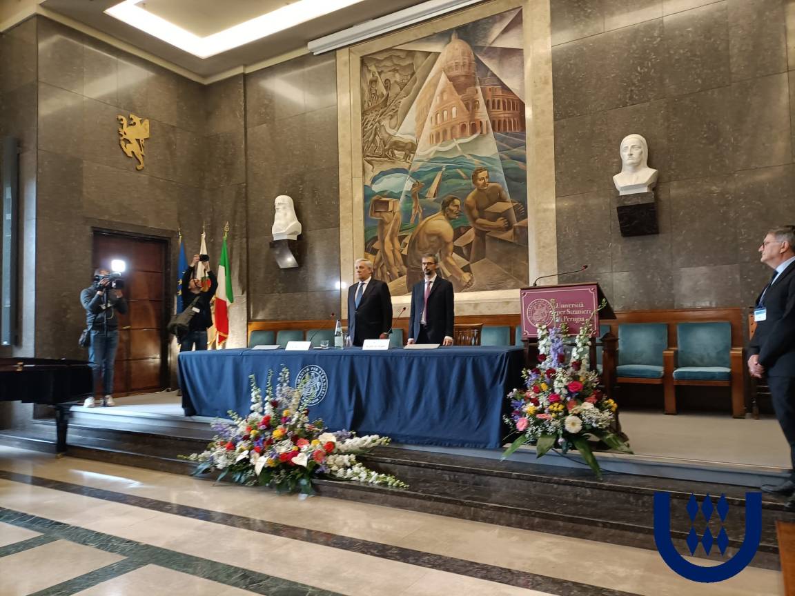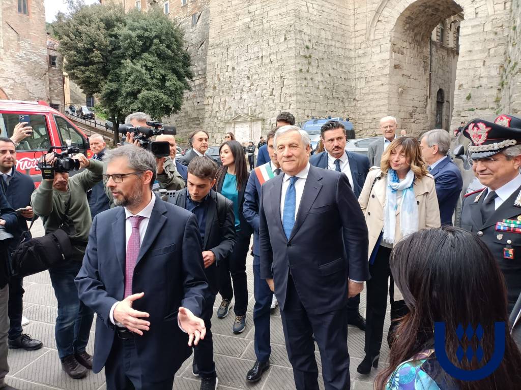 È stato accolto dal rettore dell’Unistra Valerio De Cesaris, che ha fortemente voluto questo momento di riflessione e dai docenti di palazzo Gallenga, che ha Tajani ha salutato personalmente. «La politica estera non la fa solo il Ministro degli esteri insieme ai diplomatici e ai funzionari del ministero – ha risposto ai giornalisti prima della lectio – la fanno i professori dell’Università, la fanno i professori che insegnano italiano all’estero, i nostri istituti italiani di cultura, le missioni di pace, la fanno le nostre imprese che esportano il nostro sapere far nel mondo. La politica estera è un grande mosaico dove ognuno gioca un ruolo fondamentale». L’Università degli Stranieri di Perugia «è una tessera fondamentale di questo mosaico».