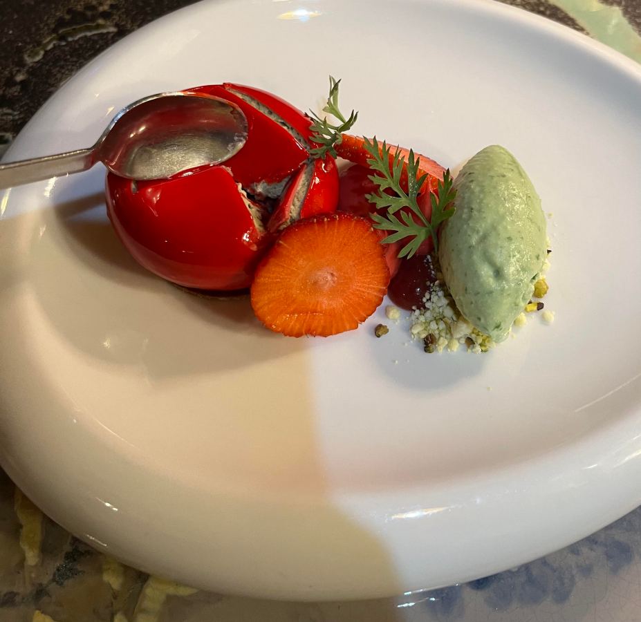 Un punto forte dell’Alchimista è proprio il servizio. Molto giovanile ma allo stesso tempo elegante, sciolto e alla mano. La cordialità non manca mai ma, come già affermato prima, rimane la piacevolezza di scambiare due “chiacchiere” con chi rende possibile l’esperienza culinaria. Oramai da tanti anni nella squadra c’è Lorenzo che amministra la sala in maniera impeccabile e dispensando consigli. Per esempio, il dolce, è stato un suo suggerimento. Accolto subito.