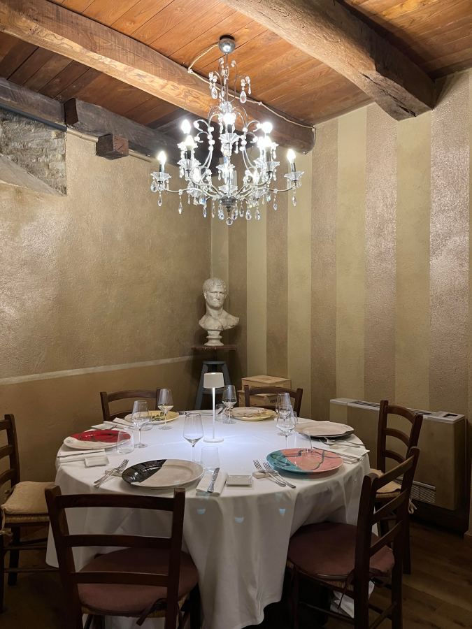Bellissima anche il luogo, dalla sala interna fino alla più invitante esposizione in piazza nei mesi non freddi. Mise en place veramente curata ma senza eccedere. Rimane comunque un’anima da enoteca-trattoria.