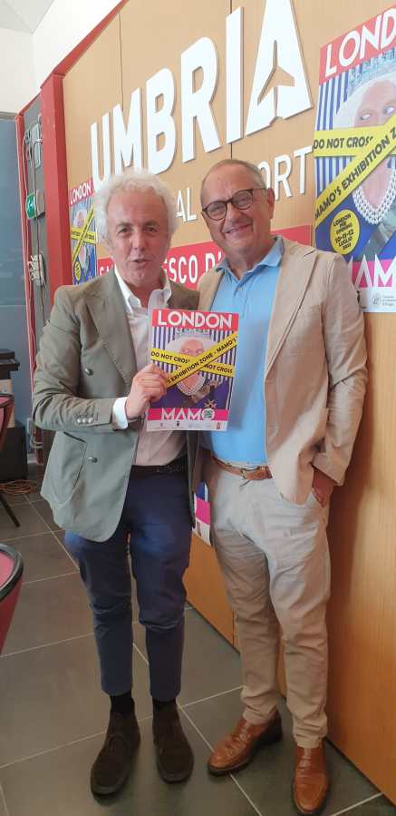 Mister MaMo ha presentato il suo tour londinese in una sala dello “scalo San Francesco”, con una location che era già di suo la didascalia all’iniziativa: da Perugia verso il mondo. A settembre a Londra porterà anche l’opera “Il Perugino” e, ci tiene a dirlo, questo è “il ponte tra passato, presente e futuro” delle due città. “In puro stile contemporaneo”, caratteristica di MaMo, l’omaggio alle celebrazioni per i 500 anni dalla morte di Pietro Vannucci.