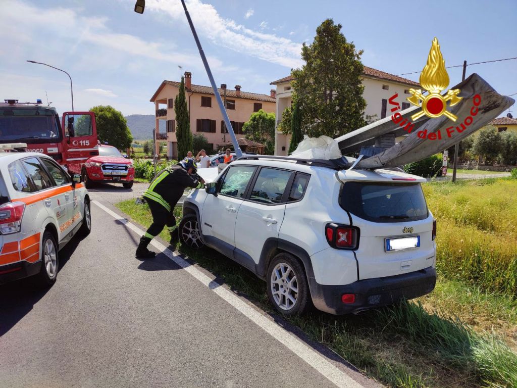 PANICALE (Perugia) – Vivo per miracolo. Nonostante la sua auto sia stata letteralmente trapassata dal guardrail contro cui si è schiantata.