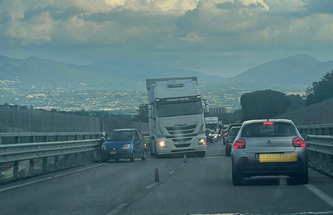 TERNI – Un’auto ferma sulla E45 al margine della carreggiata, è riuscita a provocare code interminabili, nel pomeriggio di mercoledì 7 giugno, in direzione Perugia. All’altezza di San Gemini Anas sta completando i lavori di pavimentazione per un tratto di 30 chilometri e sta realizzando il nuovo spartitraffico centrale. Sono mesi che sulla E45 si cammina su una sola corsia. Oltre ai restringimenti gli automobilisti devono fare i conti con le chiusure di alcune uscite, sempre per i lavori programmati da Anas. Il banale incidente di mercoledì è riuscito a procurare seri disagi agli automobilisti, che per raggiungere Perugia da Terni hanno impiegato quasi due ore
