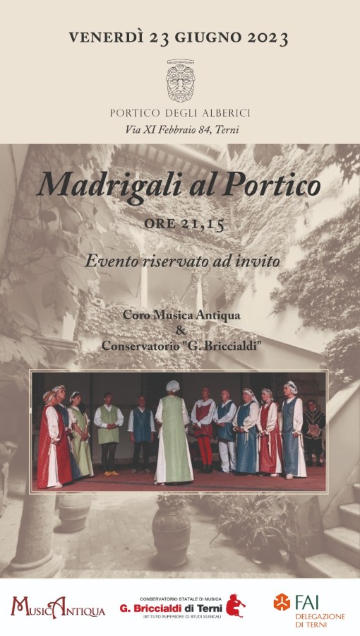 L’evento è nato da un’idea condivisa tra Luigi Paparoni e Maria Cristina Frittella, entrambi volontari della delegazioni Fai di Terni, desiderosi di proporre una serata estiva all’insegna della musica madrigalistica in una location ad hoc, con la preziosissima sinergia del Conservatorio Briccialdi.