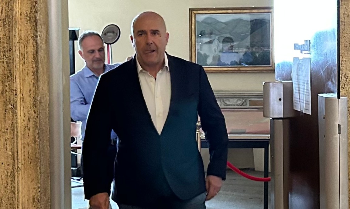 Alle 13,36 la convocazione tramite l’ufficio stampa di Palazzo Spada per le 14. I giornalisti puntuali. Bandecchi con 17 minuti di ritardo. Corridore: «Preciso che abbiamo affittato l’aula per una iniziativa politica». LE FOTO
