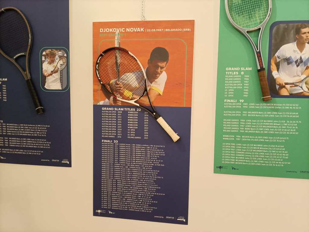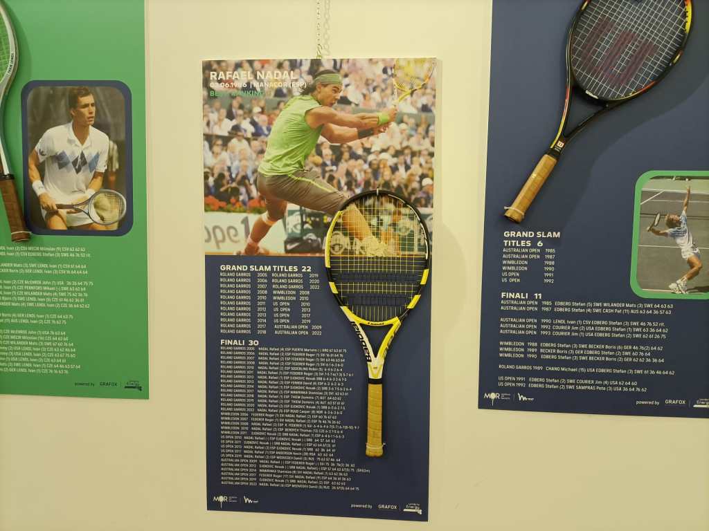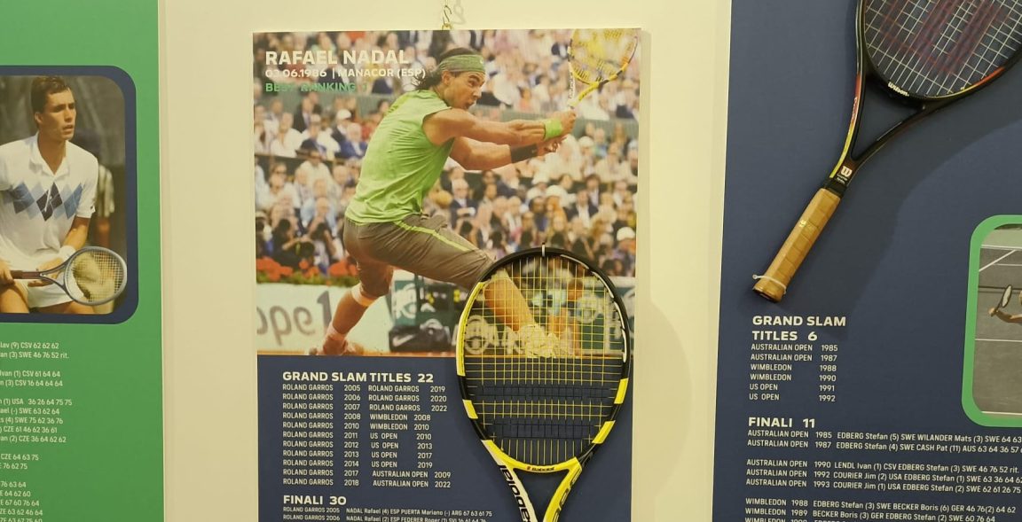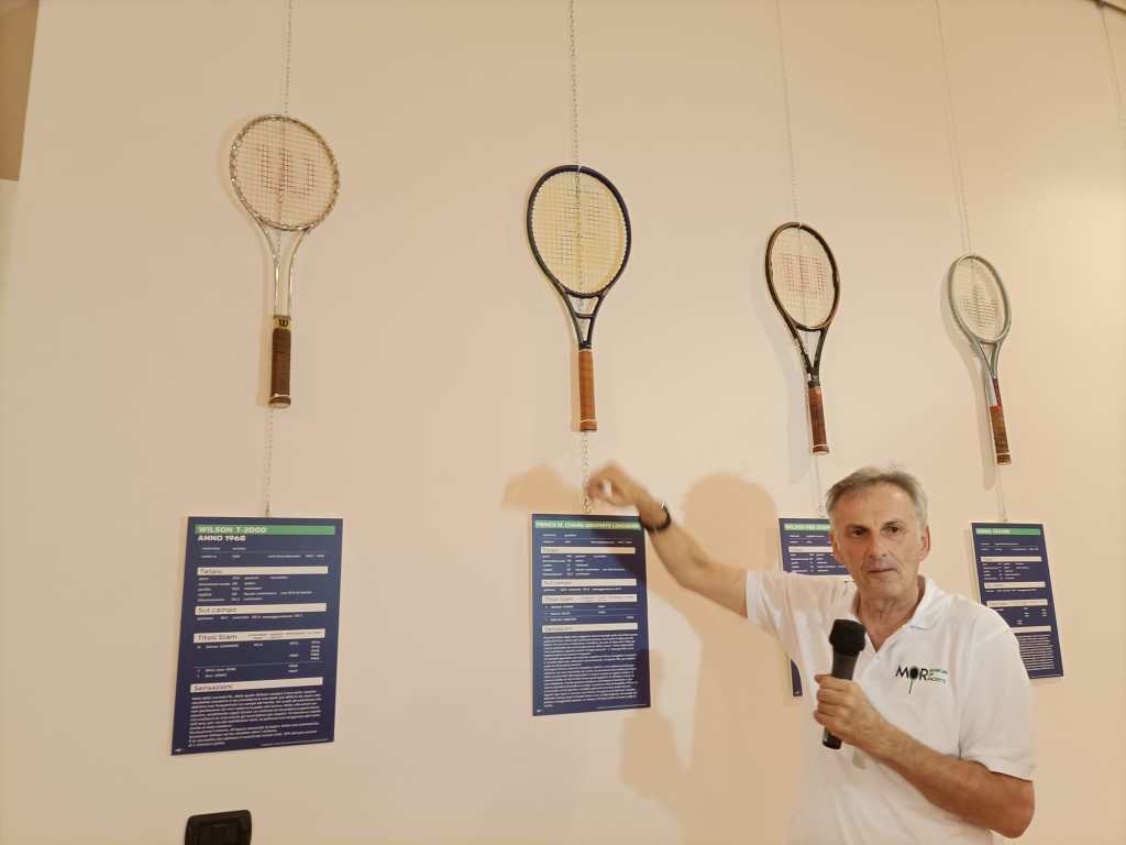 È stato inaugurato nel pomeriggio di venerdì 9 giugno nella sala Alessi (ex Borsa Merci) di via Mazzini, in centro storico. La collezione è ideata da Paolo Bertolino e torna in viaggio per la prima volta dopo le Nitto ATP Finals 2021 per incantare i visitatori in occasione degli Internazionali di Tennis Città di Perugia G.I.Ma. Tennis Cup. La mostra, aperta gratuitamente al pubblico dal 9 al 12 giugno, vanta una rappresentanza di circa 50 dei 1.110 pezzi totali, tra cui le racchette originali autografate di Rafael Nadal e Roger Federer. All’inaugurazione erano presenti l’assessore allo sport e al commercio del Comune di Perugia Clara Pastorelli, l’ideatore del museo Paolo Bertolino, il direttore sportivo del Tennis Club Perugia Filippo Vitali, il direttore del torneo Francesco Cancellotti ed il presidente di MEF Tennis Events Marcello Marchesini. L’assessore Pastorelli: «Non posso fare altro che ringraziare tutti coloro che hanno reso possibile l’organizzazione di questo spazio che arricchisce ancor di più l’evento principale, da anni in costante crescita. Tutto questo è sintomo del fatto che la città ha colto l’importanza della kermesse». Alle sue parole si è aggiunto il pensiero dell’ideatore e proprietario della collezione Paolo Bertolino: «Sono entrato nel mondo del tennis molti anni fa come incordatore, e un giorno da una foto di Björn Borg che eseguiva un colpo ho avuto l’idea di cominciare a raccogliere questi cimeli. Per me è sempre una grande emozione scegliere quali racchette portare, viaggiare verso tante località per portarle alla gente e preparare la mostra». Il museo è accompagnato da una parte grafica dove si ripercorre la storia del tennis e l’evoluzione delle racchette stesse.
