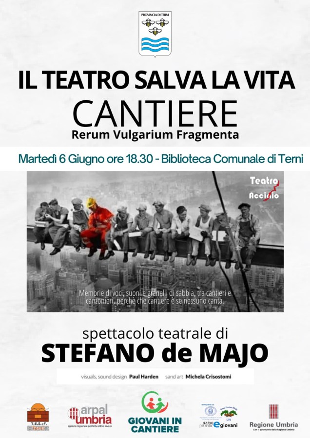 TERNI – Martedi’ 6 giugno alle ore 18,30 presso la Bct Terni verrà nuovamente replicata la rappresentazione teatrale ‘Il teatro salva la vita’ con Stefano de Majo, progetto ideato dalle Scuole Edili di Terni e Perugia in collaborazione con Inail Umbria.
