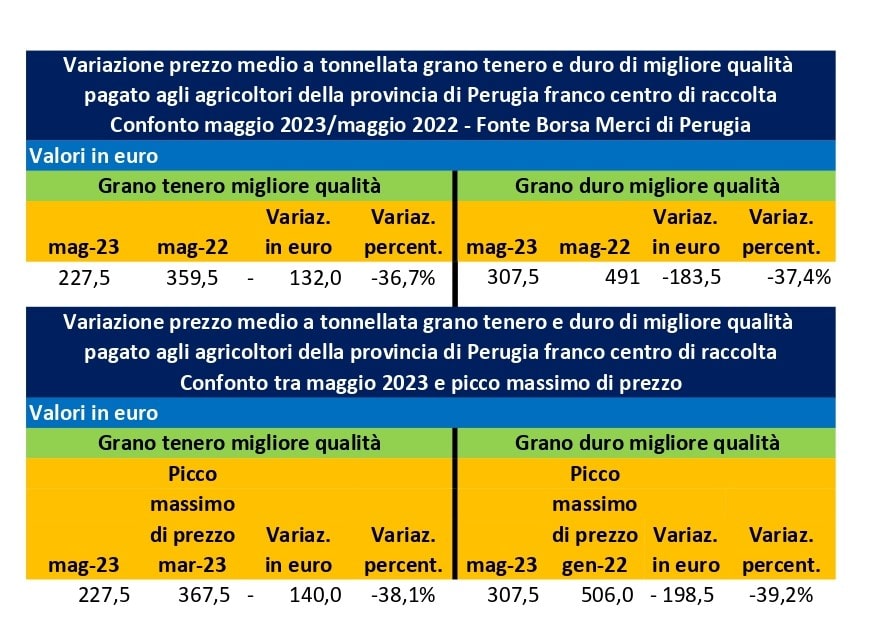 PERUGIA – Un quadro inerente la provincia di Perugia, con effetti estensivi anche in provincia di Terni, sui prezzi del grano è stato fornito sabato 3 giugno dalla Borsa Merci, organo della Camera di Commercio dell’Umbria, che pubblica – con cadenza settimanale – i prezzi all’ingrosso di 278 merci, tra cui quelli dei frumenti. Prezzi che fanno da riferimento nella contrattazione tra le parti.