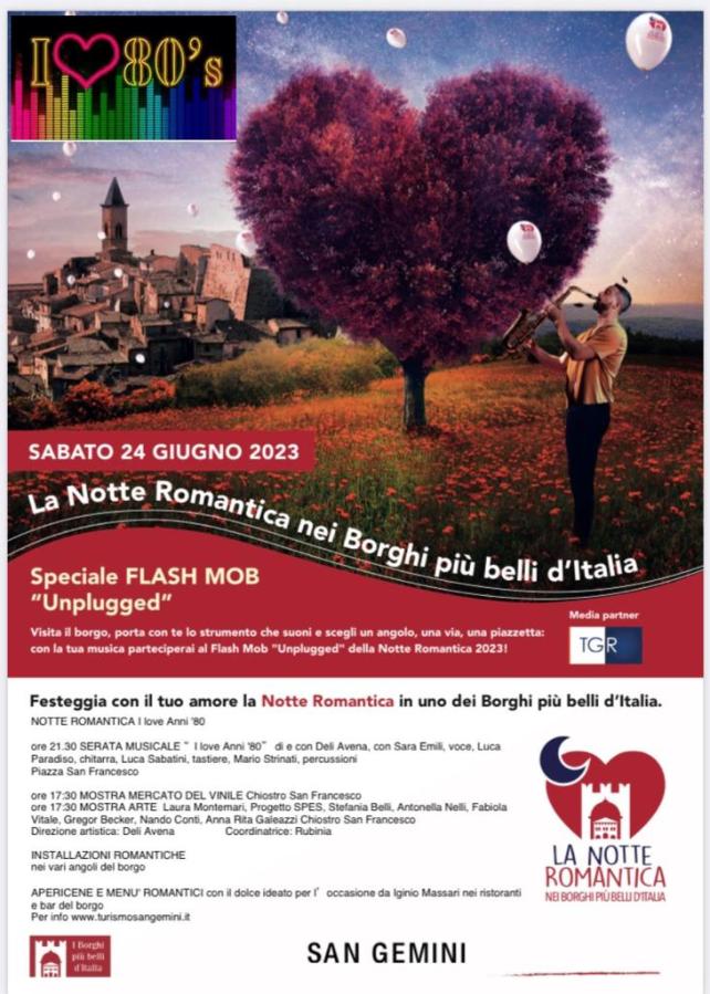 Uno dei momenti più attesi, di inizio estate, coinciderà con sabato 24 giugno ovvero la Notte Romantica dei borghi più belli d’Italia, I love anni ’80.