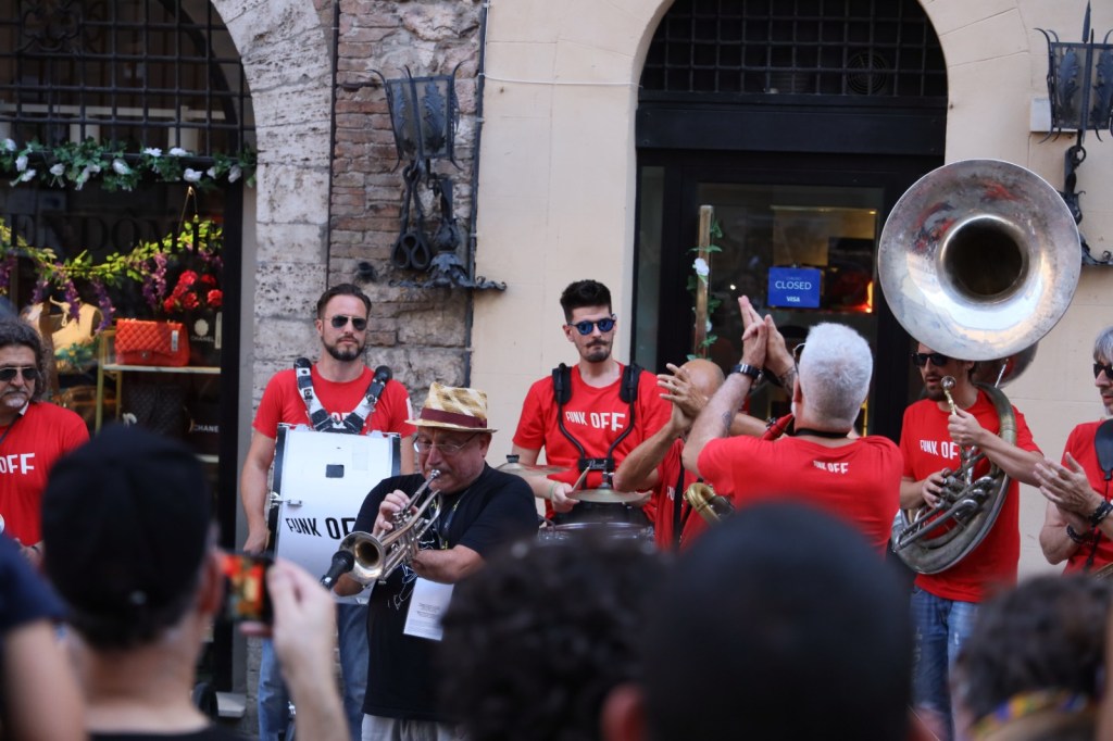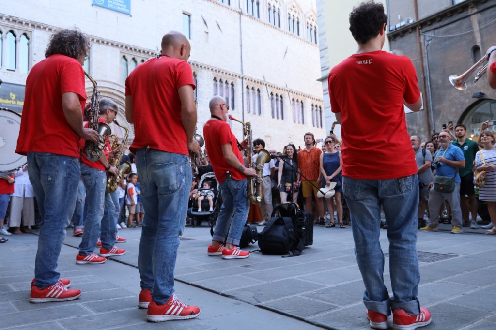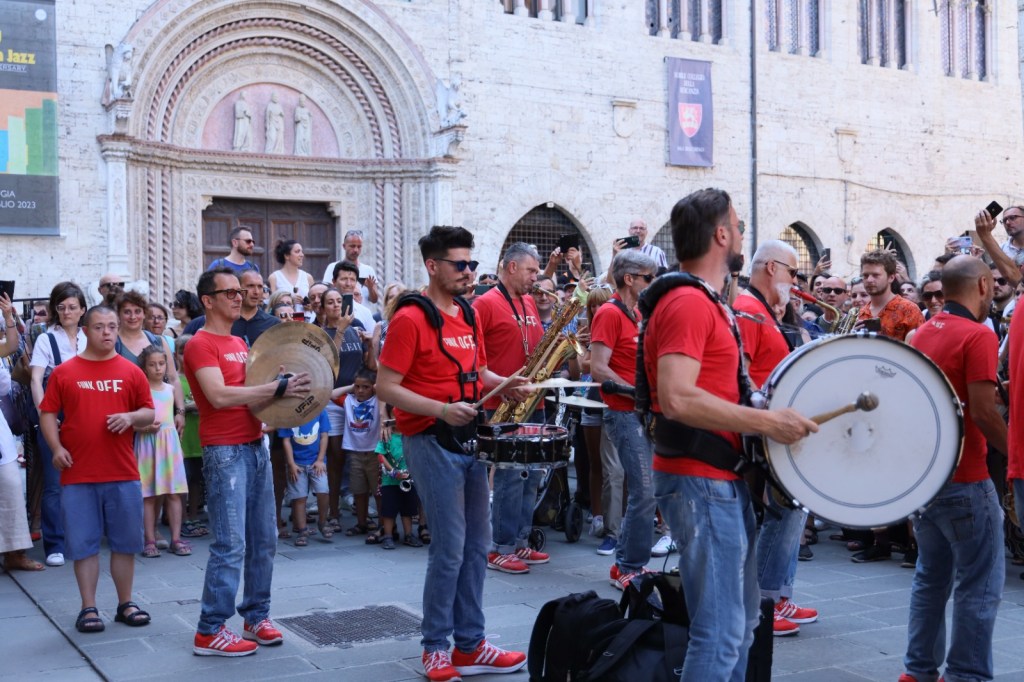 A colorare corso Vannucci è stata invece l’esibizione di Funk Off, immancabili anche in questa 50esima edizione. Ricco il programma di oggi tra cui spicca anche, tra gli altri, Gianluca Petrella, vincitore del premio 2023 della Fondazione Perugia.